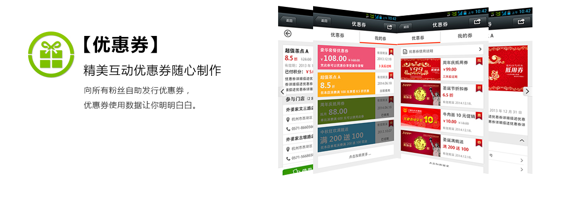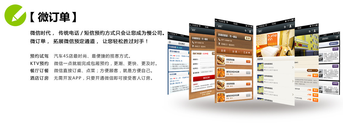 微官網(wǎng) 微商城 微社區(qū) 微信支付 優(yōu)惠劵 微外賣 微名片 微報(bào)名 車主關(guān)懷 微游戲 微訂單-酒店 微團(tuán)購 會(huì)員卡 預(yù)約試駕 汽車保養(yǎng)預(yù)約 課程預(yù)約 會(huì)員管理 KTV預(yù)約 餐廳預(yù)約 圖書預(yù)定 美容預(yù)約 微請(qǐng)柬 問卷調(diào)查 微調(diào)研 微現(xiàn)場(chǎng) 答題闖關(guān) 微請(qǐng)柬 多客服 搖一搖 微配送 微簽到 微測(cè)試 客戶備忘 幸運(yùn)卡牌 客戶備忘